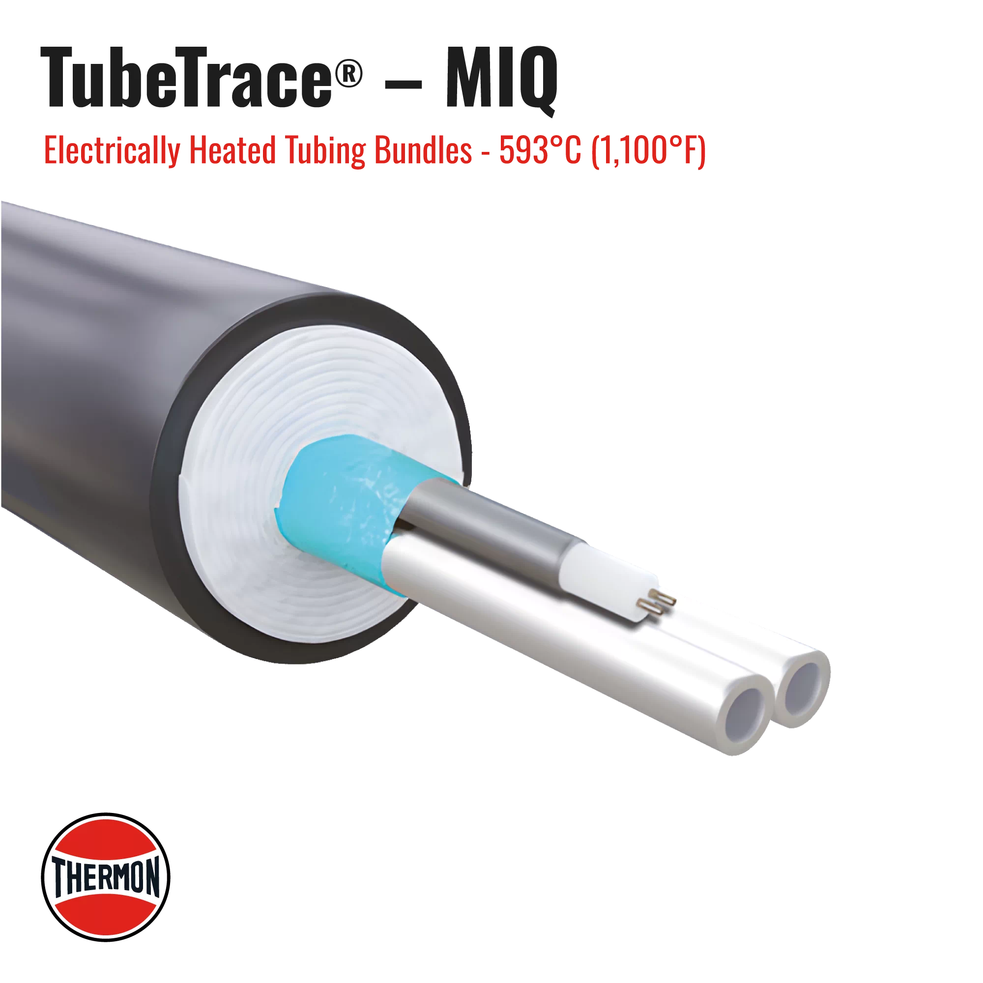 This is an electrically heated and insulated tubing bundle that utilizes MIQ (Mineral Insulated Quartz) series resistance heating cable. It is considered the industry standard for ultra-high temperature applications and for situations requiring high watt density. Unlike the cut-to-length cables, MIQ heaters are pre-fabricated to specific lengths at the factory. This construction, featuring a seamless Alloy 825 metallic sheath and magnesium oxide insulation, provides exceptional durability and the highest temperature ratings, allowing for both very high temperature maintenance and resistance to extreme exposure.